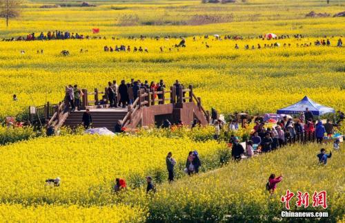 4月7日清明小長(zhǎng)假最后一天,江蘇興化千垛景區(qū)賞花觀景的人流如潮。 湯德宏 攝