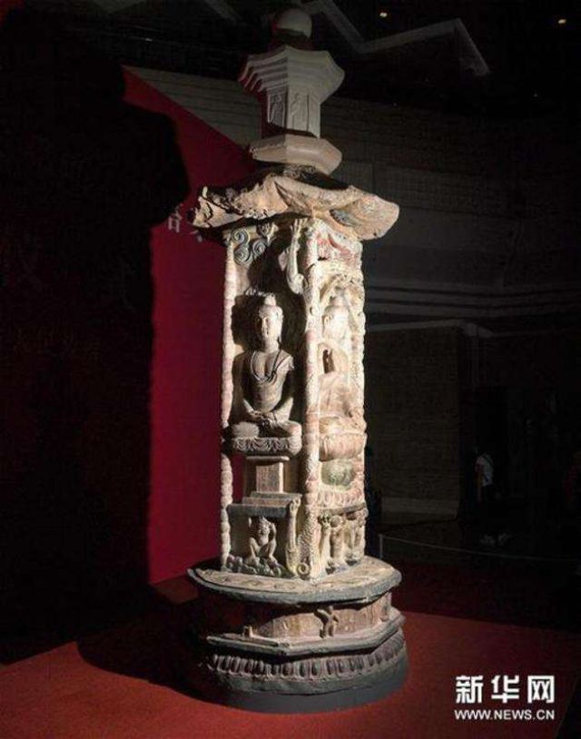 2017年4月,被盜流失19載的唐代鄧峪石塔塔身獲臺灣中臺禪寺捐贈回歸故里山西。鄧峪石塔位于山西省榆社縣鄧峪村,是一座唐代石雕彩繪四面佛造像塔。