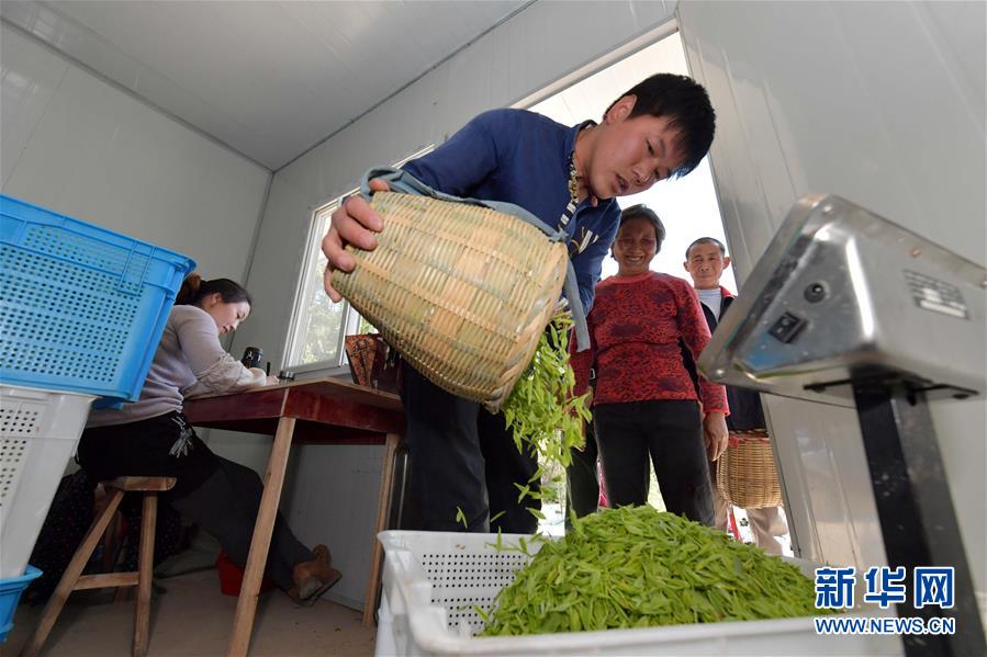 在江西省樂平市高家鎮朱家村高家白茶基地,工人在茶園里收購春茶,這里是江西“一村一名大學生”工程的教學實踐基地之一(3月28日攝)。新華社記者彭昭之攝
