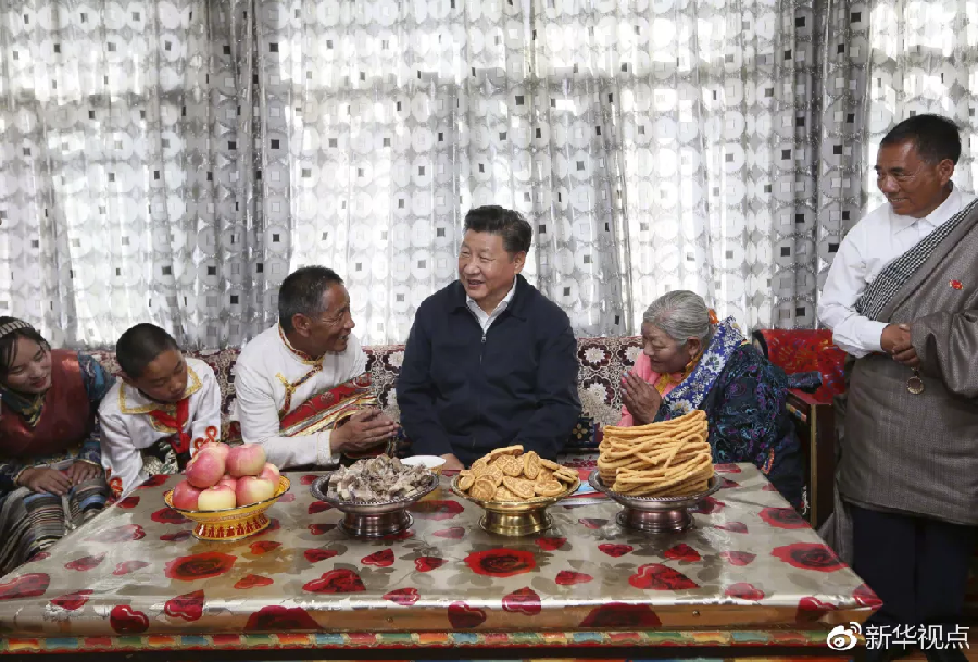 青海高原,群山巍巍。2016年8月22日下午,習近平驅車來到格爾木市唐古拉山鎮長江源村,了解生態移民搬遷情況。他指出,保護三江源是黨中央確定的大政策,生態移民是落實這項政策的重要措施,一定要組織實施好。