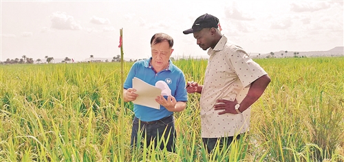 黎志康研究員(左)在田間指導水稻育種。記者 常理 攝