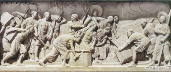 紀(jì)念碑浮雕上沒有著名人物,都是人民群眾