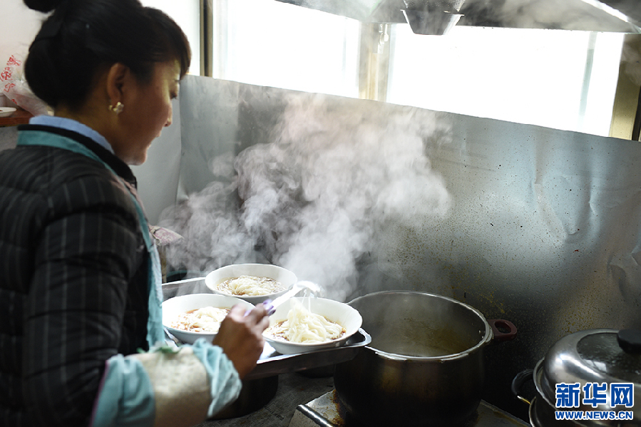 正在為客人煮面的尼瑪拉姆(5月12日 攝)。新華網記者 陳琳 攝