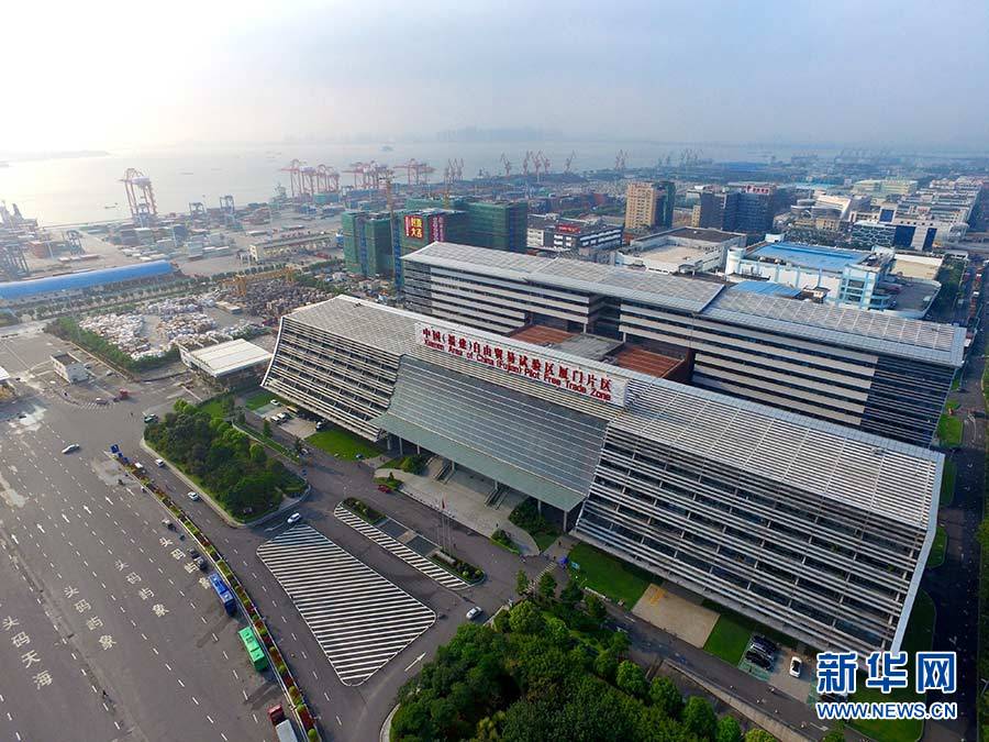 這是中國(福建)自由貿易試驗區廈門片區一角(2016年4月13日無人機拍攝)。新華社記者 姜克紅 攝