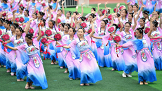 接著,臺灣信眾舉行了祭拜神農炎帝的傳統儀式“敬十獻禮”,64名學生身著古代禮服敬獻“八佾舞”。最后,伴隨著《炎帝頌》嘹亮的歌聲,和平鴿和紅色氣球一齊騰空而起,拜祖禮成。