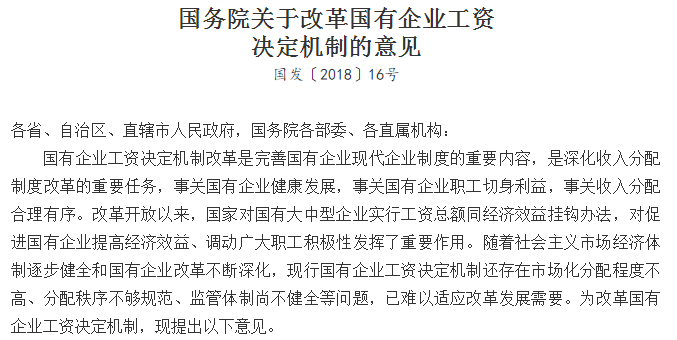 25日,國務(wù)院正式發(fā)布《關(guān)于改革國有企業(yè)工資決定機(jī)制的意見》,一份影響著近4千萬國企員工工資的重磅文件正式面世!