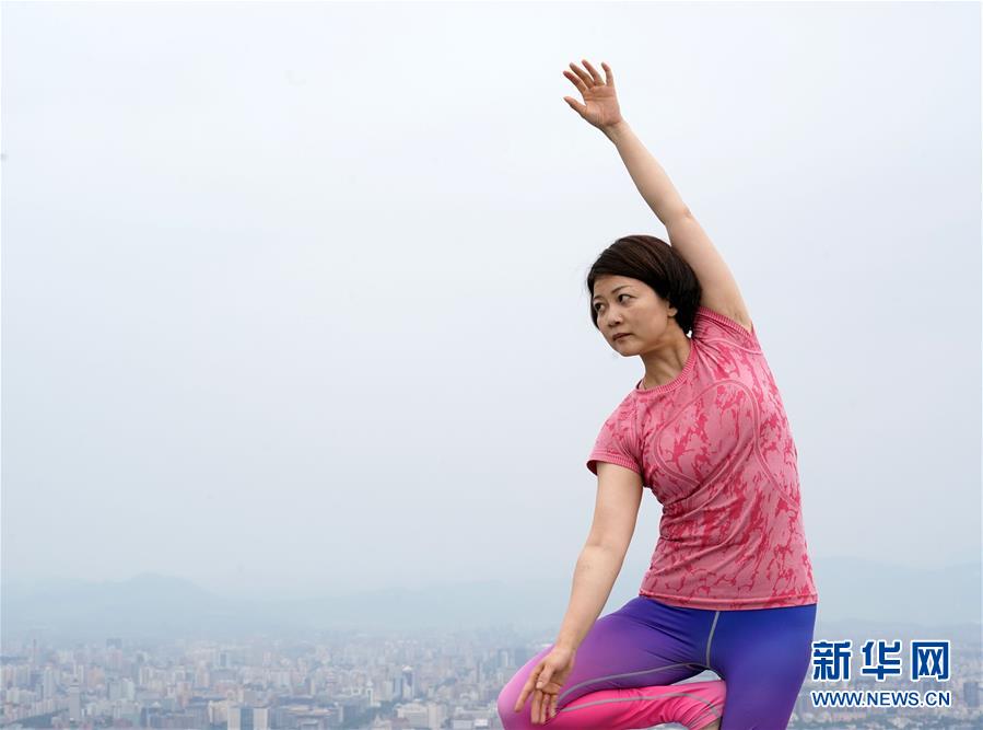 當日,數名瑜伽愛好者在專業瑜伽教練的帶領下在北京國貿大酒店70層以上的高樓層練習瑜伽,體驗高空練習瑜伽的樂趣。