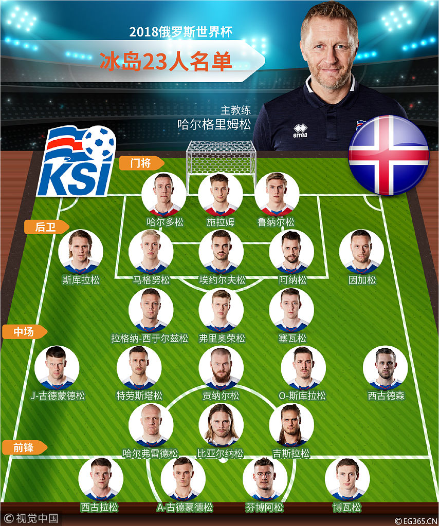 男:是的,冰島也是世界杯歷史上人口最少的參賽國。有人開玩笑說,把冰島人口刨去女人、太老太小和干其他工作的男人,剛好只剩下冰島足球隊的23人。