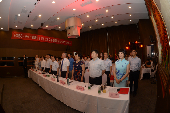 北京支持雄安產(chǎn)業(yè)發(fā)展促進(jìn)會(huì)30日下午在京舉行“不忘初心 迎七一”黨建引領(lǐng)精準(zhǔn)扶貧交流會(huì),與會(huì)人員起立唱國歌。