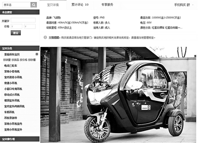 如淘寶上一家電動車銷售商家就直言標注:“此車不能辦理牌照,也不需要駕照,請根據(jù)當?shù)貙嶋H政策購車,不能因上牌問題退貨。”