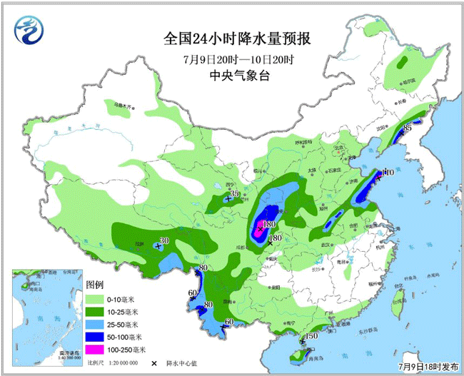 馬學款:未來幾天,我國主雨帶主要集中在四川盆地、西北地區東部、華北到東北等地。其中7月10日至11日,四川盆地西部、西北地區東部、華北、東北地區南部等地將有一次明顯降雨過程,大部地區有中到大雨,部分地區有暴雨,四川盆地西部、甘肅東南部、陜西西南部等地局地有大暴雨。11日上午前后,臺風“瑪莉亞”將在福建北部到浙江南部一帶沿海登陸,受其影響,10日夜間至12日,我國臺灣島以東洋面、臺灣海峽、東海中南部海域、閩浙臺沿海將有較大風雨天氣,臺灣島、福建、浙江南部、江西等地有暴雨或大暴雨、沿海局地有特大暴雨。