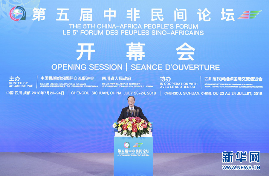 新華社成都7月23日電(記者鄭明達)第五屆中非民間論壇23日在成都開幕,國家副主席王岐山出席開幕會并致辭。
