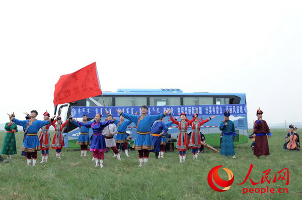 蘇尼特右旗烏蘭牧騎為牧民表演。人民網 賀茂杰 攝