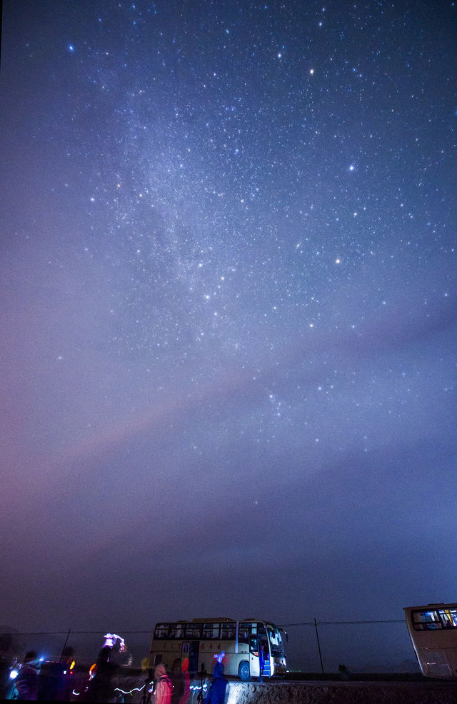 天文愛好者在德令哈天文科普館前觀星(喻菲攝)