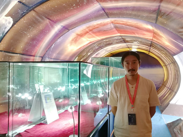 上海五雲坊隕石工作室收藏家張勃為“星空大會”帶來各類隕石參展,并向德令哈天文科普館贈送了一塊1516年隕落、1958年發現于廣西南丹的兩公斤重的隕石。