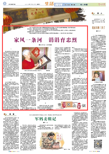眼瞅著又快到建軍節了,昨個兒,我叫來大兒子敬朋,指著門楣上懸掛的“光榮之家”牌匾,對他說:“兒啊,把匾取下來,擦干凈,8月1日那天早上咱再掛上去,要讓早上的太陽,首先照亮它。因為——它就是咱家代代相傳、鮮血凝成的家風啊!”(楊知雪/口述 謝學楓/整理)