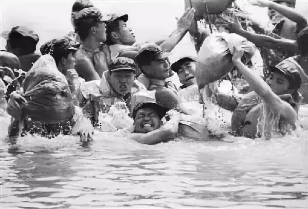 抗洪大堤上,將軍指著自己的手臂,對兒子說:“你至少得曬成這樣才合格。圖片來源見水印