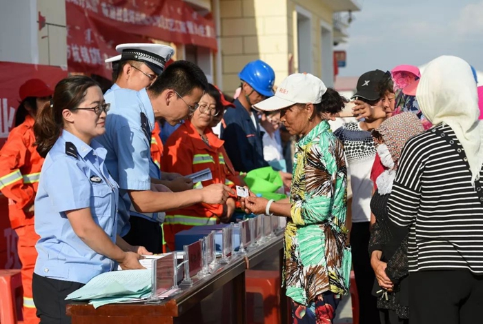 派出所民警在“民生集市”上向群眾發(fā)放新辦理的身份證。彭源 攝