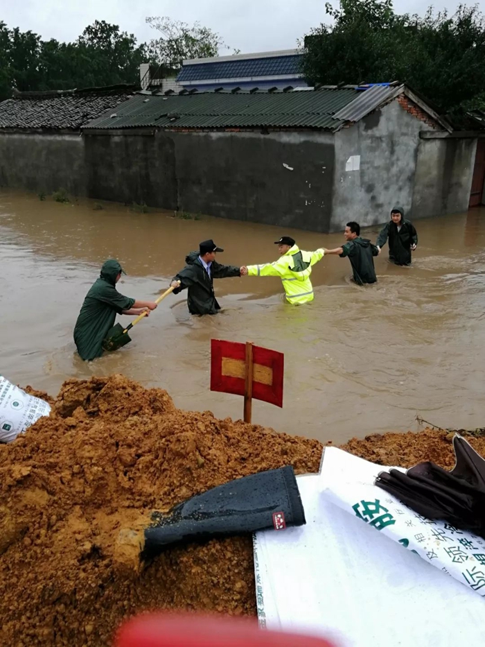 2018年7月2日,眉山市公安局園區(qū)分局象耳派出所民警在暴雨后搶險疏散群眾。