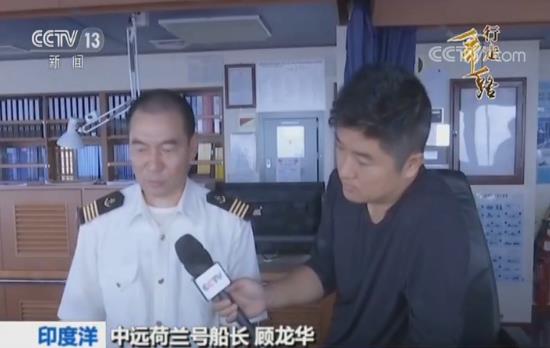 記者:“這里是裝載著超過11000多個(gè)集裝箱,正沿著海上絲綢之路歐洲線一路向西航行的中遠(yuǎn)荷蘭號集裝箱貨輪。從上個(gè)月的28日上海出發(fā)以來,現(xiàn)在,我們已經(jīng)行駛到了到了印度洋的海面上。在這十多天的航行中,給我印象最深的就是即便是像現(xiàn)在已經(jīng)行駛在大洋之中航行,我們的荷蘭號也并不孤獨(dú)。大家看我們身后,一艘和荷蘭號幾乎同等規(guī)模,甚至是比我們還要大一些的集裝箱貨輪,也在這條絲路航線和我們并行航行著。 ”