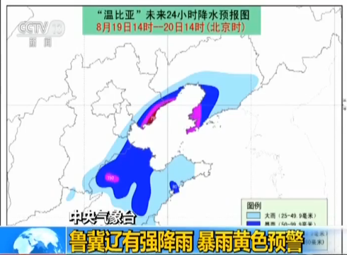 “溫比亞”雖已減弱,風雨影響猶存。中央氣象臺上午10點發布暴雨黃色預警,預計隨著它繼續北上,今明兩天強降雨也將轉移至環渤海地區,河北東部和南部、天津東南部、山東、遼寧南部等地有大到暴雨,其中山東中北部、河北東北部、遼寧南部等地局部地區有大暴雨或特大暴雨,上述部分地區還將出現短時強降水、雷暴大風等強對流天氣。氣象專家提醒,由于受臺風“摩羯”影響,本周環渤海一帶已經遭遇過強降雨,今明兩天“溫比亞”又攜暴雨來襲,需防范強降雨疊加可能引發次生災害。