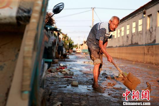 8月24日,洪水退去后濰坊壽光政府組織人員清理街道。濰坊市已啟動(dòng)《重大自然災(zāi)害衛(wèi)生應(yīng)急預(yù)案》最高級(jí)別響應(yīng)。據(jù)統(tǒng)計(jì),濰坊市已修復(fù)縣鄉(xiāng)路路基、路面79.14公里,局部損毀橋涵11座;搶通縣鄉(xiāng)公路22條、143公里。 梁犇 攝