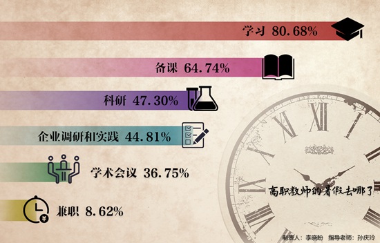 調查顯示,“學習”“備課”是高職青年教師暑期間的“重頭戲”。