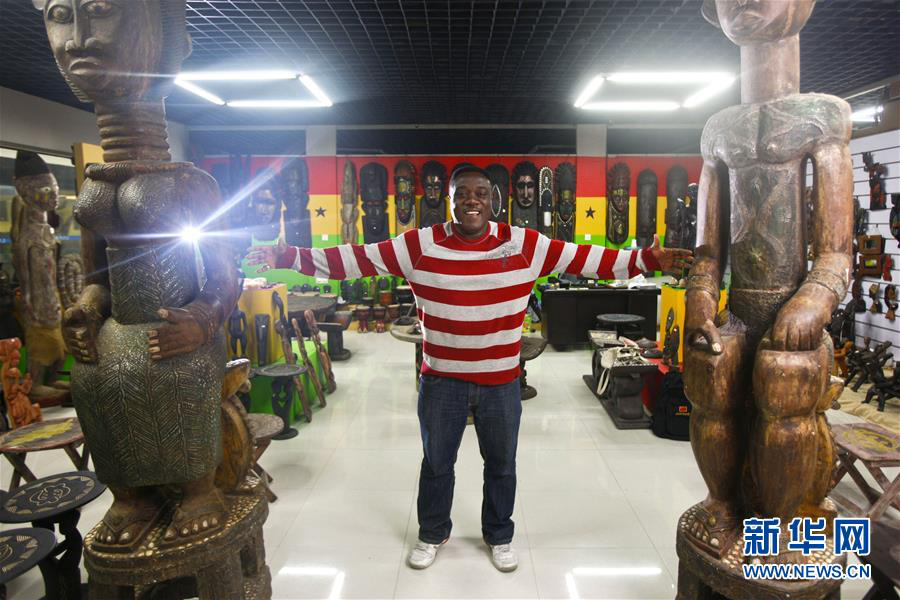 2013年3月20日,加納商人弗蘭克在浙江義烏國際商貿(mào)城自己的店鋪里留影。 新華社記者 崔新鈺 攝