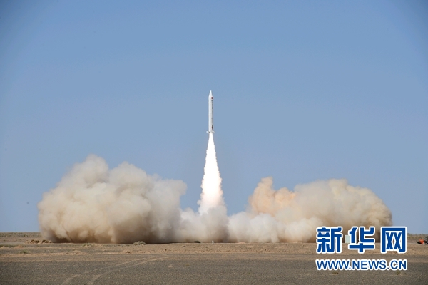 9月5日13時,酒泉衛星發射中心成功組織發射雙曲線一號(SQX-1Z)商業亞軌道火箭。 新華社發(汪江波 攝)