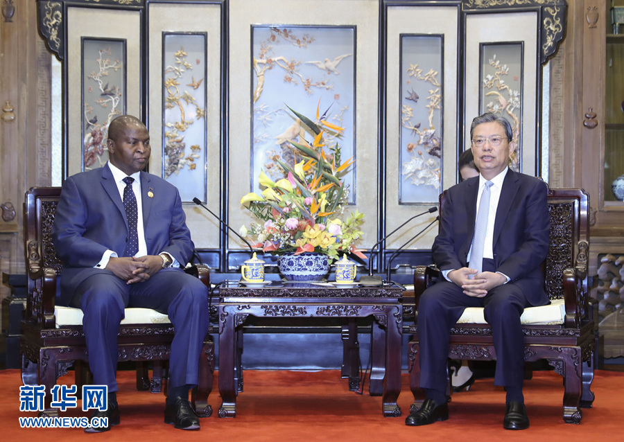 9月6日,中共中央政治局常委、中央紀委書記趙樂際在北京釣魚臺國賓館會見中非總統圖瓦德拉。 新華社記者 丁林 攝