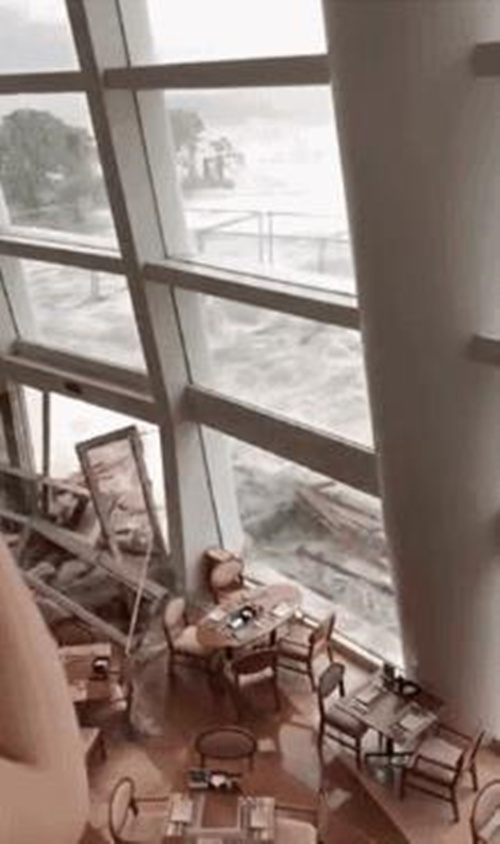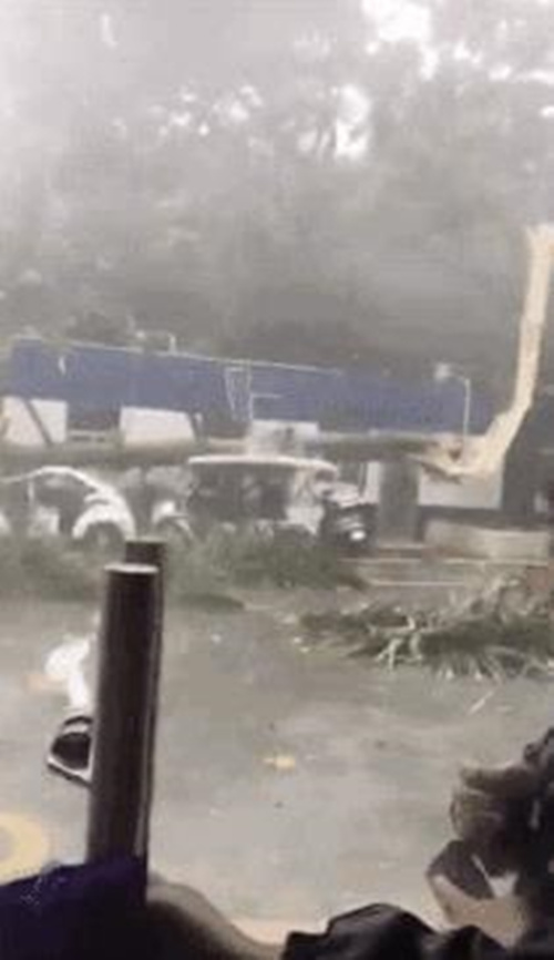 狂風暴雨在人們眼前呼嘯,大樹傾倒,驚呼聲四起:
