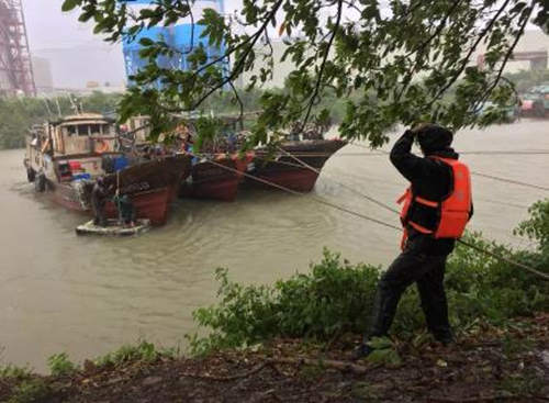 無獨有偶。9月16日上午9時10分,在珠海磨刀門水道三源社碼頭附近有6名漁民因思想疏忽,遲遲未撤離??吭诎哆叺钠婆f漁船,由于臺風強度加強并逼近珠海,希望能夠盡快撤離到避難點。珠海市邊防支隊洪灣邊防派出所接到求助后,立即出動,第一時間趕到現場將6名漁民群眾及其隨身重要財物成功轉移至安全區域。