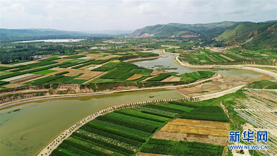 經(jīng)過(guò)治理后的寧夏固原市西吉縣葫蘆河(8月8日無(wú)人機(jī)拍攝)。新華社記者王鵬攝