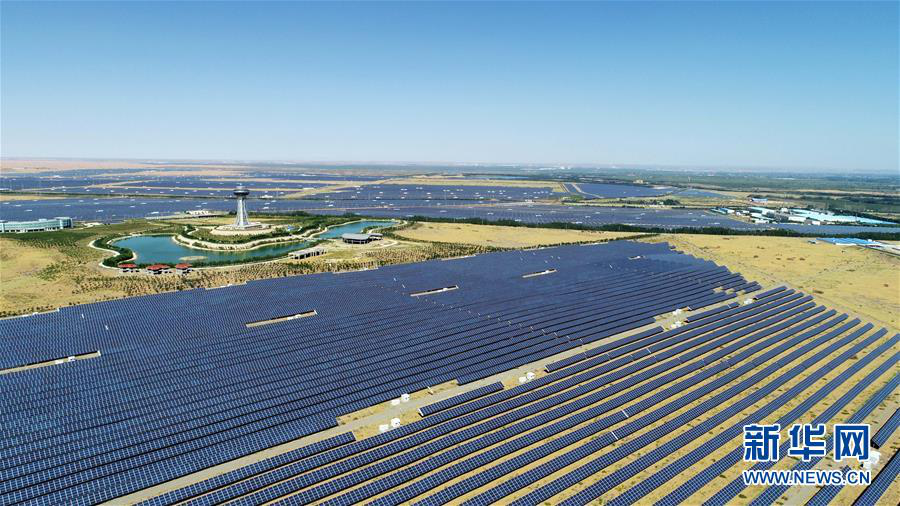 寧夏中衛(wèi)市沙漠光伏產(chǎn)業(yè)園光伏電站(9月7日無(wú)人機(jī)拍攝)。? 新華社記者王鵬攝