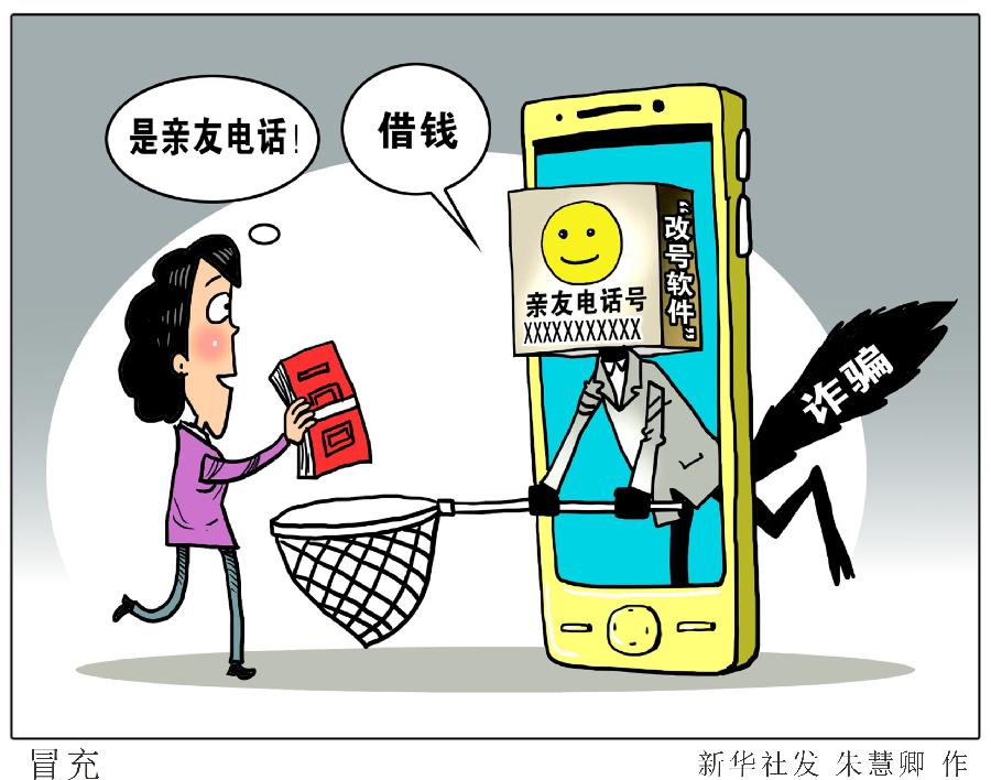 漫畫:“改號”詐騙? 新華社發(fā) 程碩 作