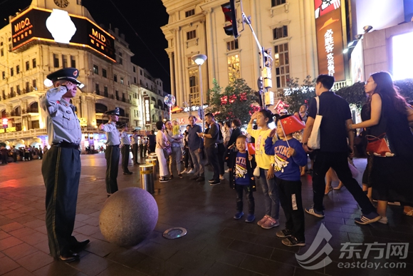 10月4日晚上20時(shí)30分,在南京東路與湖北路交叉口,武警上海總隊(duì)執(zhí)勤五支隊(duì)官兵正在疏導(dǎo)游客,突然手持國(guó)旗的3名小朋友走到執(zhí)勤官兵面前,朝著執(zhí)勤的戰(zhàn)士敬了個(gè)禮,并向執(zhí)勤的戰(zhàn)士說(shuō):“叔叔,您辛苦了。”隨后,執(zhí)勤的戰(zhàn)士也向3位小朋友回敬了一個(gè)軍禮。這溫馨的一幕,被網(wǎng)友用手機(jī)拍照記錄,發(fā)到微信朋友圈中,感動(dòng)了不少人。