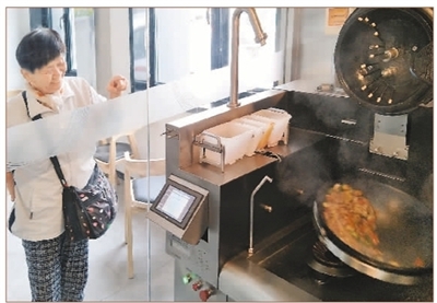 最近,家門口發(fā)生了一件新鮮事兒:我們周邊的居民第一次吃到了機(jī)器人做的飯。