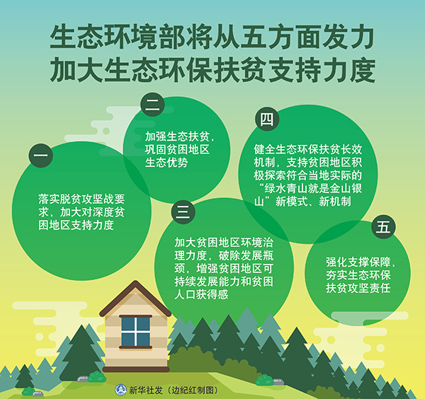 圖表:生態(tài)環(huán)境部將從五方面發(fā)力加大生態(tài)環(huán)保扶貧支持力度 新華社發(fā) 邊紀(jì)紅 制圖