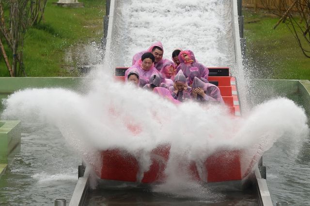 游客在浙江寧波中華復興文化園非物質文化博覽園體驗游樂項目 ( 黃宗治/攝 )