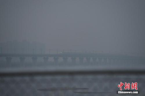 12月1日0時(shí),北京市再啟動(dòng)空氣重污染黃色預(yù)警,圖為一列高鐵在霧霾中經(jīng)過北京房山。 中新社記者 崔楠 攝