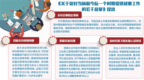 今年以來,我國就業(yè)形勢總體穩(wěn)定,穩(wěn)中有進。但是,個別地區(qū)、個別企業(yè)還面臨著一些新挑戰(zhàn)。為穩(wěn)定就業(yè),擴大幫扶范圍,增強支持力度,國務(wù)院日前印發(fā)《關(guān)于做好當前和今后一個時期促進就業(yè)工作的若干意見》,為相關(guān)部門和地方政府做好就業(yè)工作提供了明確的目標和方向——