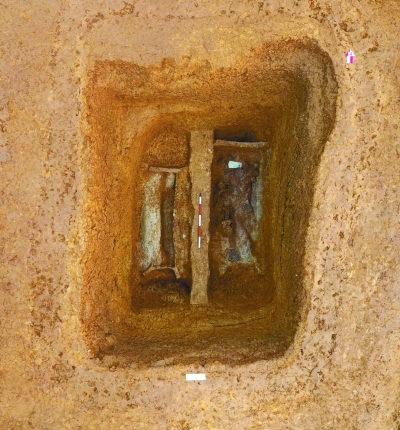 城河遺址王家塝墓地發現的“同穴二室”墓。資料圖片