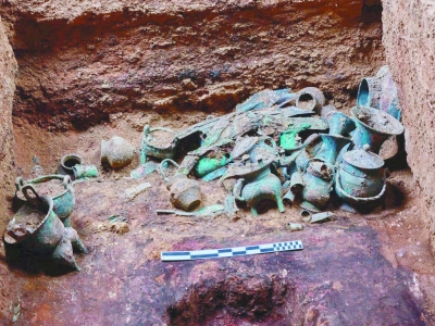 通過對115座墓葬的考古發掘,發現大多與兩周時期周系墓葬的特征保持了明顯的一致性。大墓和部分中型墓雖遭嚴重盜掘,但仍發掘清理出大量青銅器,以及金器、玉器、鐵器、陶器和漆木器等珍貴文物。最惹眼的是,大中型墓中,多隨葬有精美的漆木器,如鐘磬架子、幾案、豆等。