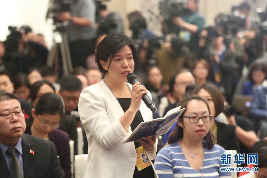 全國(guó)政協(xié)十三屆一次會(huì)議新聞發(fā)布會(huì)3月2日16:30在人民大會(huì)堂一層新聞發(fā)布廳召開(kāi),大會(huì)新聞發(fā)言人王國(guó)慶向中外媒體介紹本次大會(huì)有關(guān)情況并回答記者提問(wèn)。圖為經(jīng)濟(jì)日?qǐng)?bào)記者提問(wèn)。新華網(wǎng)/中國(guó)政府網(wǎng) 曲植 攝?