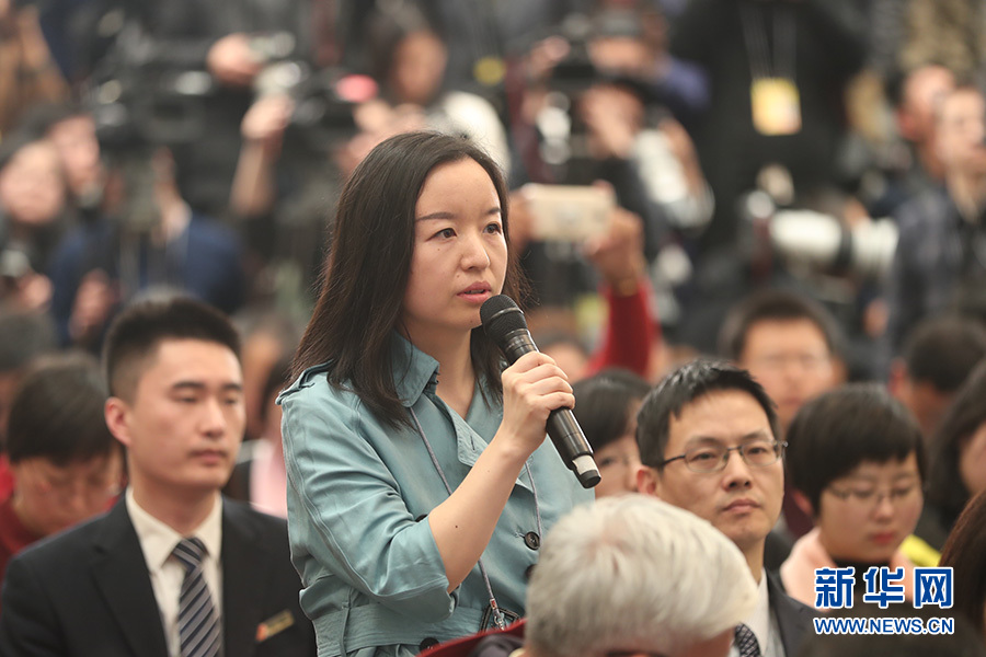 全國政協十三屆一次會議新聞發布會3月2日16:30在人民大會堂一層新聞發布廳召開,大會新聞發言人王國慶向中外媒體介紹本次大會有關情況并回答記者提問。圖為人民政協報記者提問。新華網/中國政府網 曲植 攝