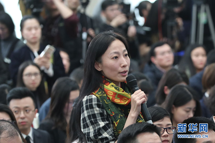 全國政協(xié)十三屆一次會議新聞發(fā)布會3月2日16:30在人民大會堂一層新聞發(fā)布廳召開,大會新聞發(fā)言人王國慶向中外媒體介紹本次大會有關(guān)情況并回答記者提問。圖為香港文匯報、大公報記者提問。新華社記者 邢廣利 攝
