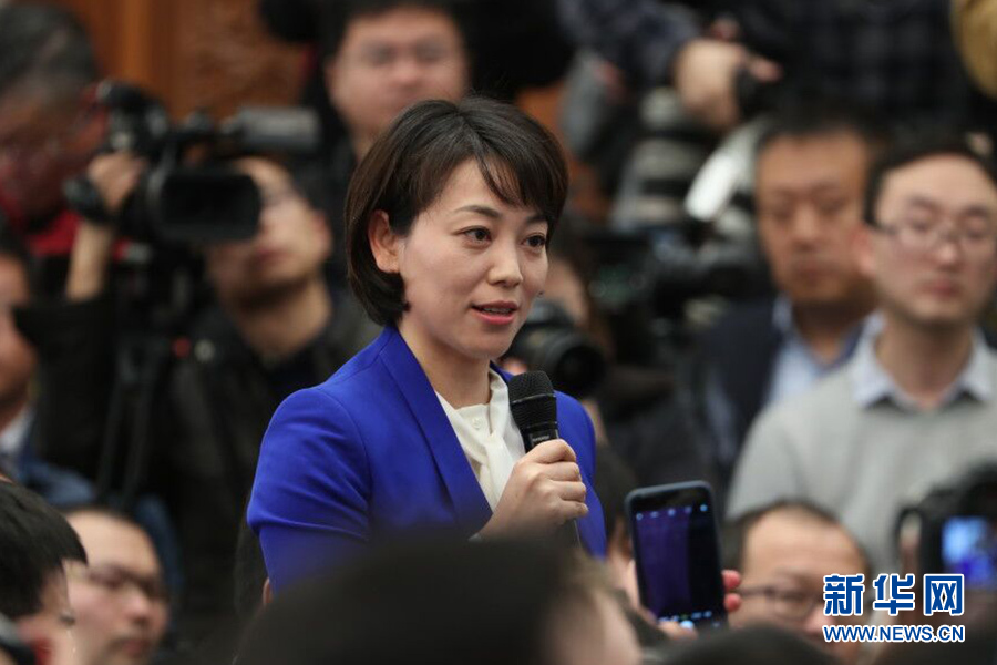 3月4日,十三屆全國人大一次會議在人民大會堂新聞發(fā)布廳舉行新聞發(fā)布會,由大會發(fā)言人張業(yè)遂就大會議程和人大工作相關的問題回答中外記者的提問。圖為中央電視臺記者提問。新華網(wǎng)/中國政府網(wǎng) 陳杰 攝