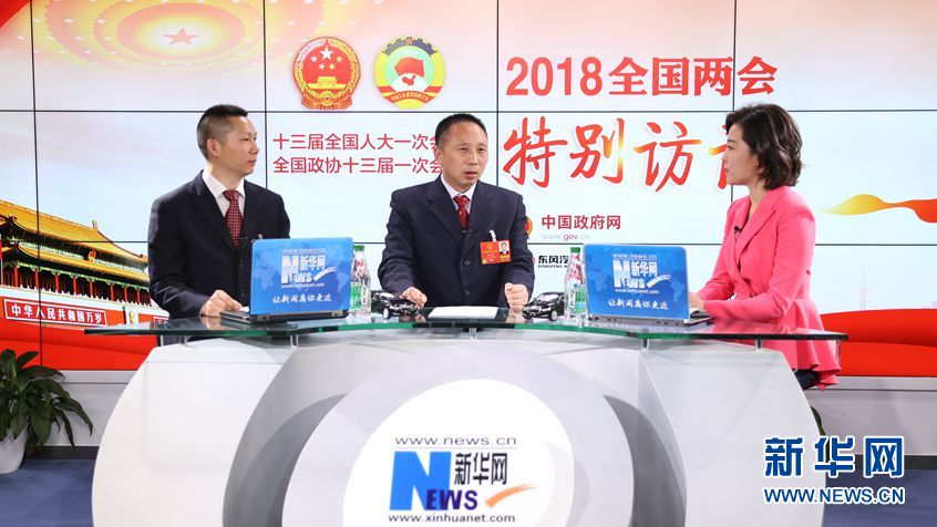 3月5日,神龍汽車有限公司武漢工廠制造一部沖焊分廠鈑金工楊祉剛(左)做客新華網(wǎng)2018全國兩會特別訪談。新華網(wǎng) 張斌/攝