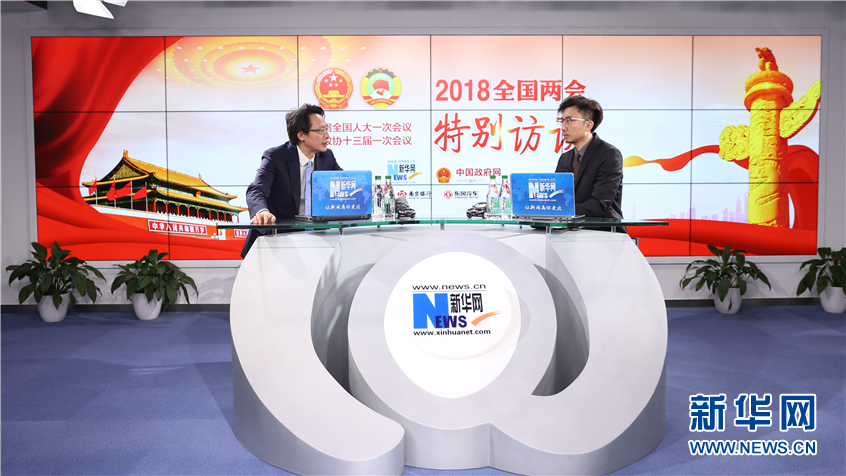 圖為,中國宏觀經(jīng)濟(jì)研究院常務(wù)副院長王昌林做客新華網(wǎng)2018全國兩會特別訪談“新跨越兩會專家講” 新華網(wǎng) 張斌攝?