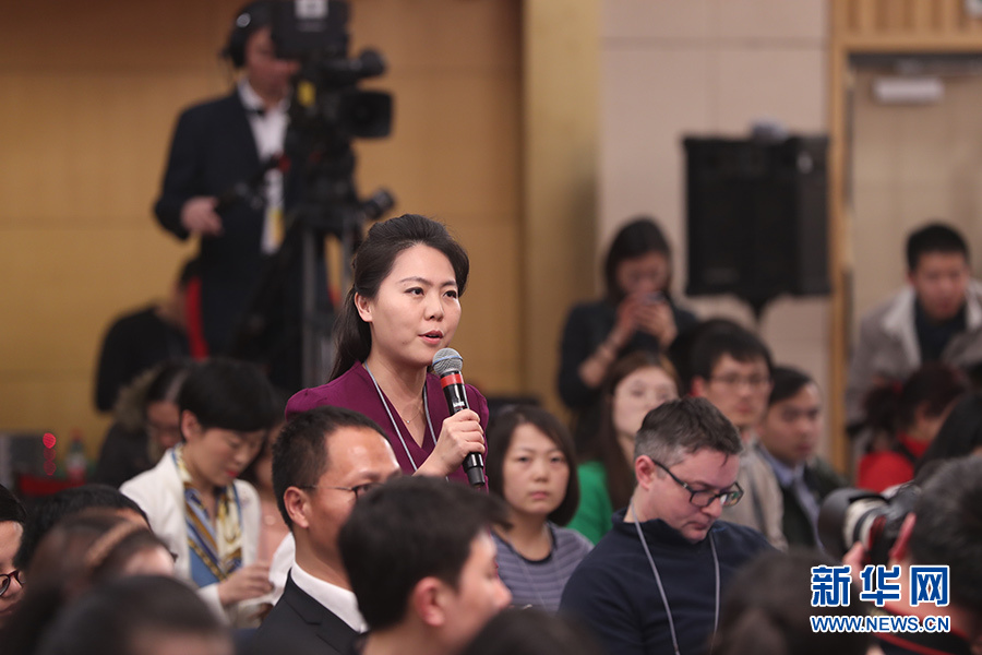 十三屆全國人大一次會議新聞中心于3月7日在梅地亞中心多功能廳舉行記者會,邀請國務院扶貧辦主任劉永富就“打好精準脫貧攻堅戰”的相關問題回答中外記者的提問。圖為新華社記者提問。新華網/中國政府網 曲植 攝